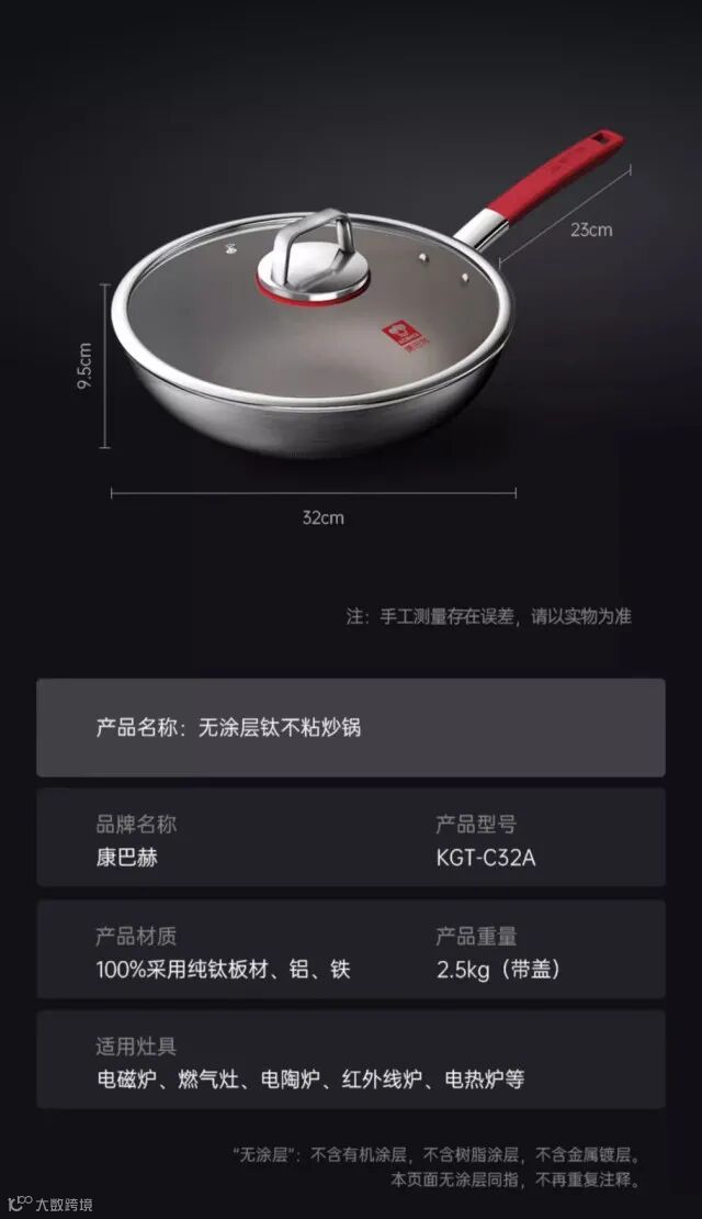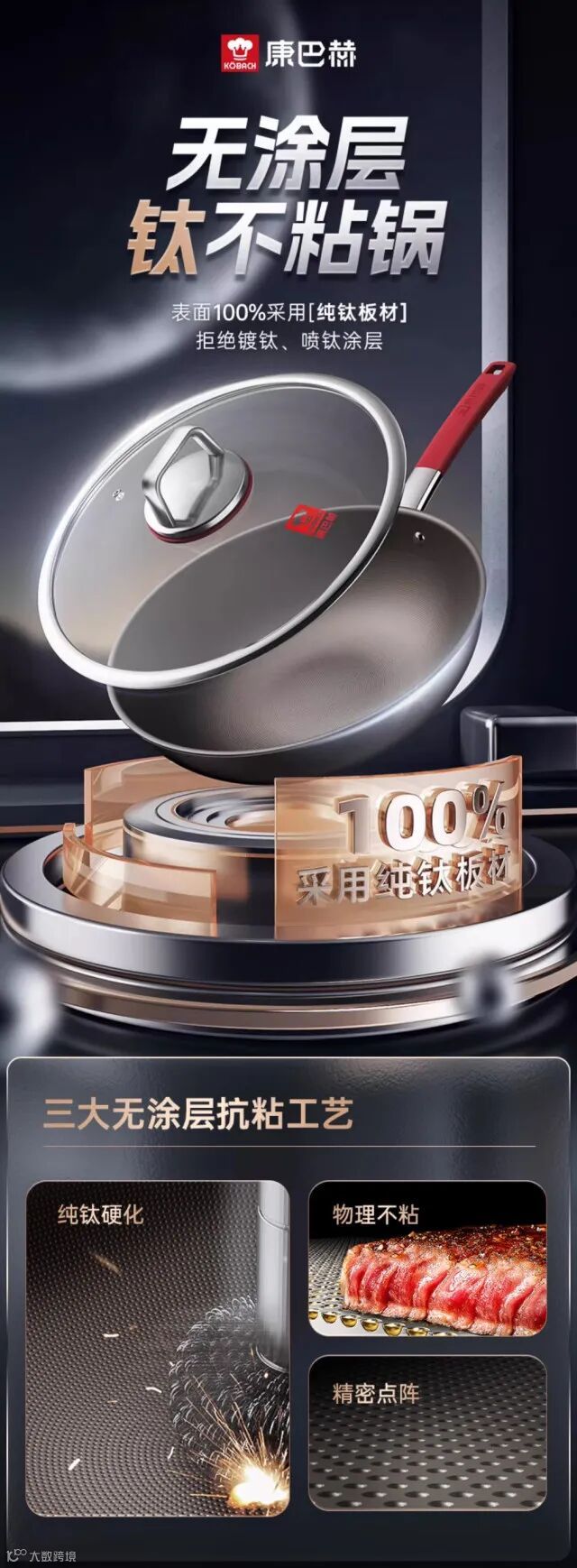 【周末内购】康巴赫纯钛锅无涂层钛不粘炒锅KGT-C32A