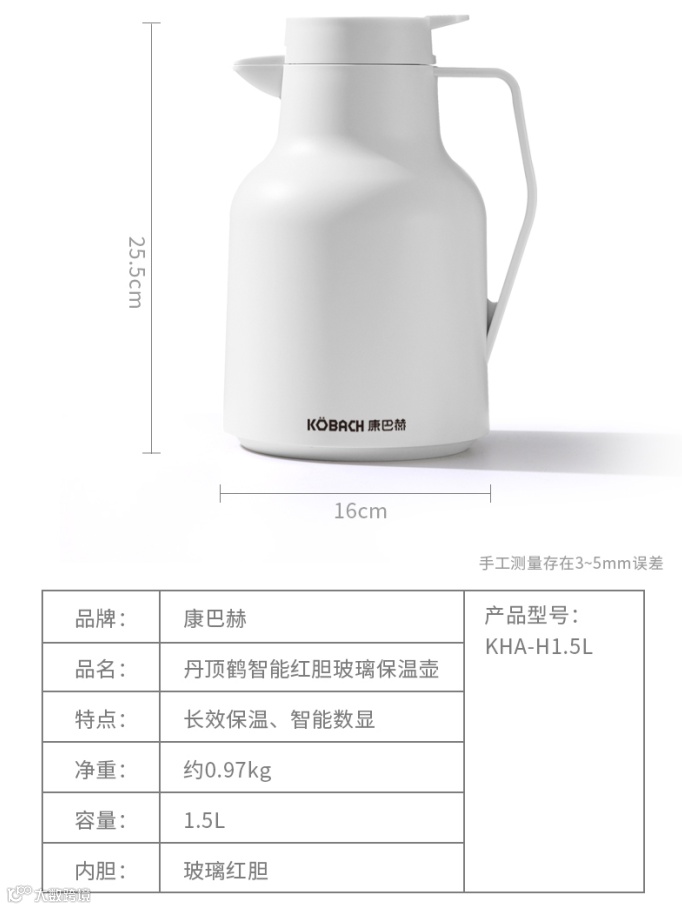 【周末内购】康巴赫丹顶鹤双层红胆玻璃保温壶1.5升 KHA-H1.5L