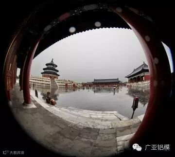 冀晓俐——天坛。天坛是著名的皇家园林,作者为表现它的宏伟气势呢,利用雨天地面的倒影增加它的韵律,再用屋檐下的柱子做框架,经过鱼眼镜头宽范的超角度的拍摄,把祈年殿收入其中。