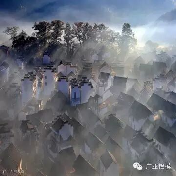 汪顺陵---天上人间。作品是作者2010年在江西婺源石城拍摄的,晨雾和炊烟在山村屋顶中缭绕,初升的太阳从东方照射进来,晨雾和炊烟掩盖了繁杂的背景,村庄仿佛在天宫一样。