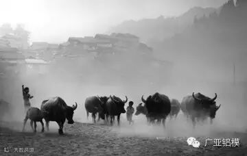 刘奕——放牧古村。作品摄于贵州黔东南卡寨,座落在一座地势险要的半山腰上,远远望去,寨上一座座高耸入云的楼房锁在烟雾中时隐时现,充满了神秘的色彩,儿童放牧的欢腾场景,为神秘的古寨增添了生活的气息。