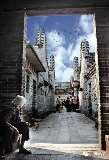 黄灵辉——古村来客。作品拍摄于2012年3月的一个下午,作者被高低起伏层层叠叠的锅耳楼群的气势深深吸引和打动,这时刚好有一个白发苍苍的老阿婆坐在古村门楼内的石板凳上,或许是感到稀奇,不停的回首张望着古村里的游客们。