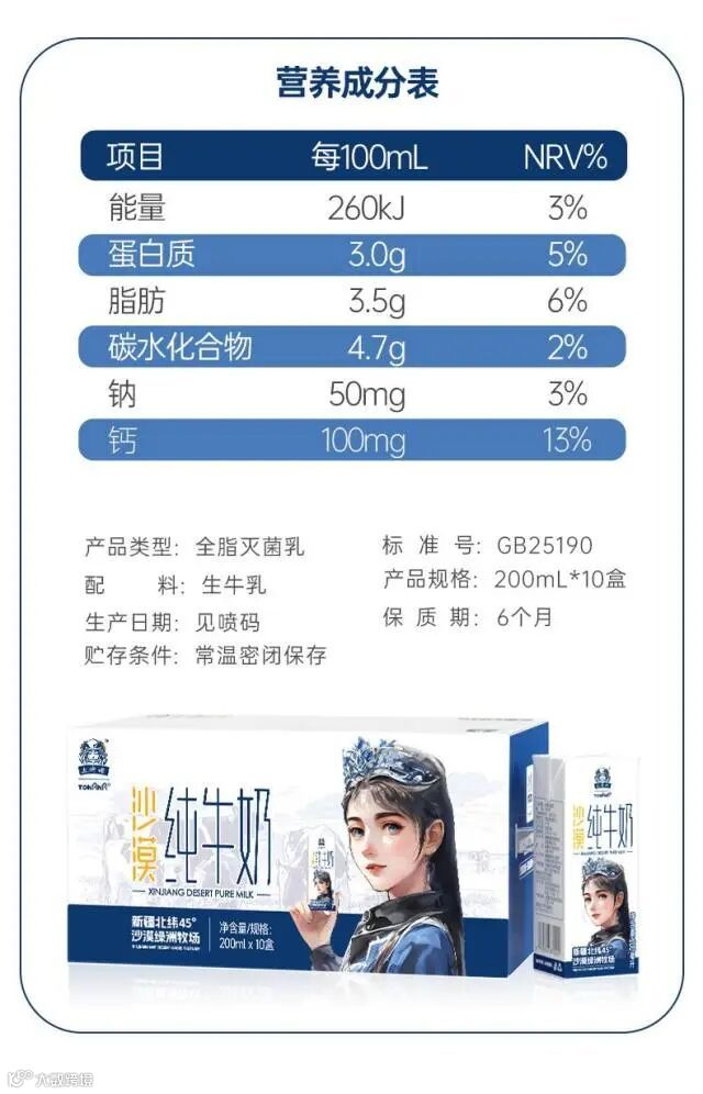 每100ml含3.0g优质乳蛋白和120毫克原生高钙,远超国标、欧盟标准√
