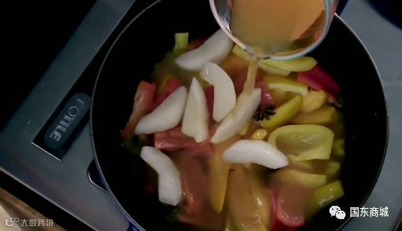 放些许月桂叶和八角调味,再放入西洋梨和适量的白酒、菜汤和200ml水