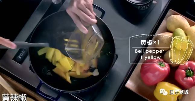 相继放入预先切好的大蒜、洋葱、熟芒果、黄辣椒、红辣椒