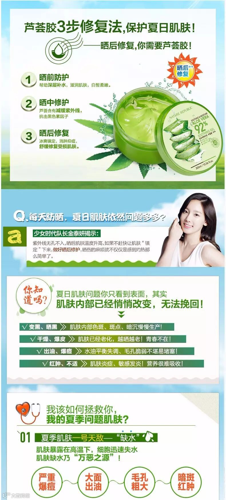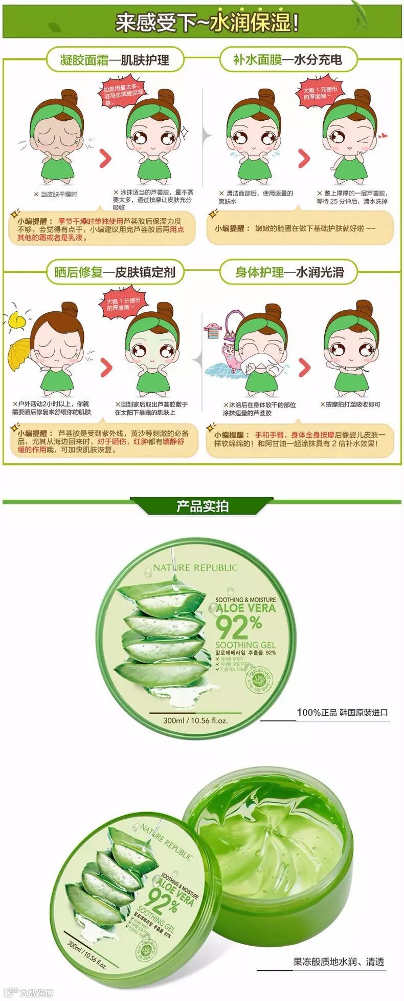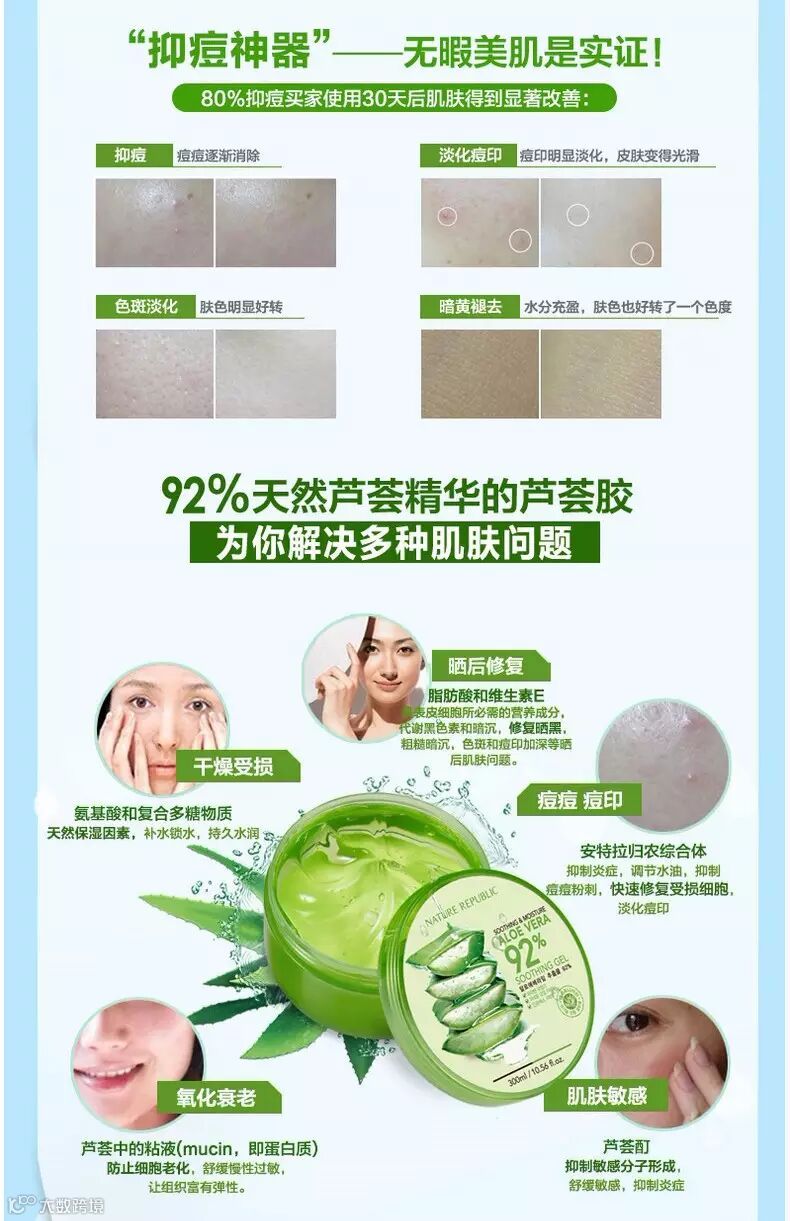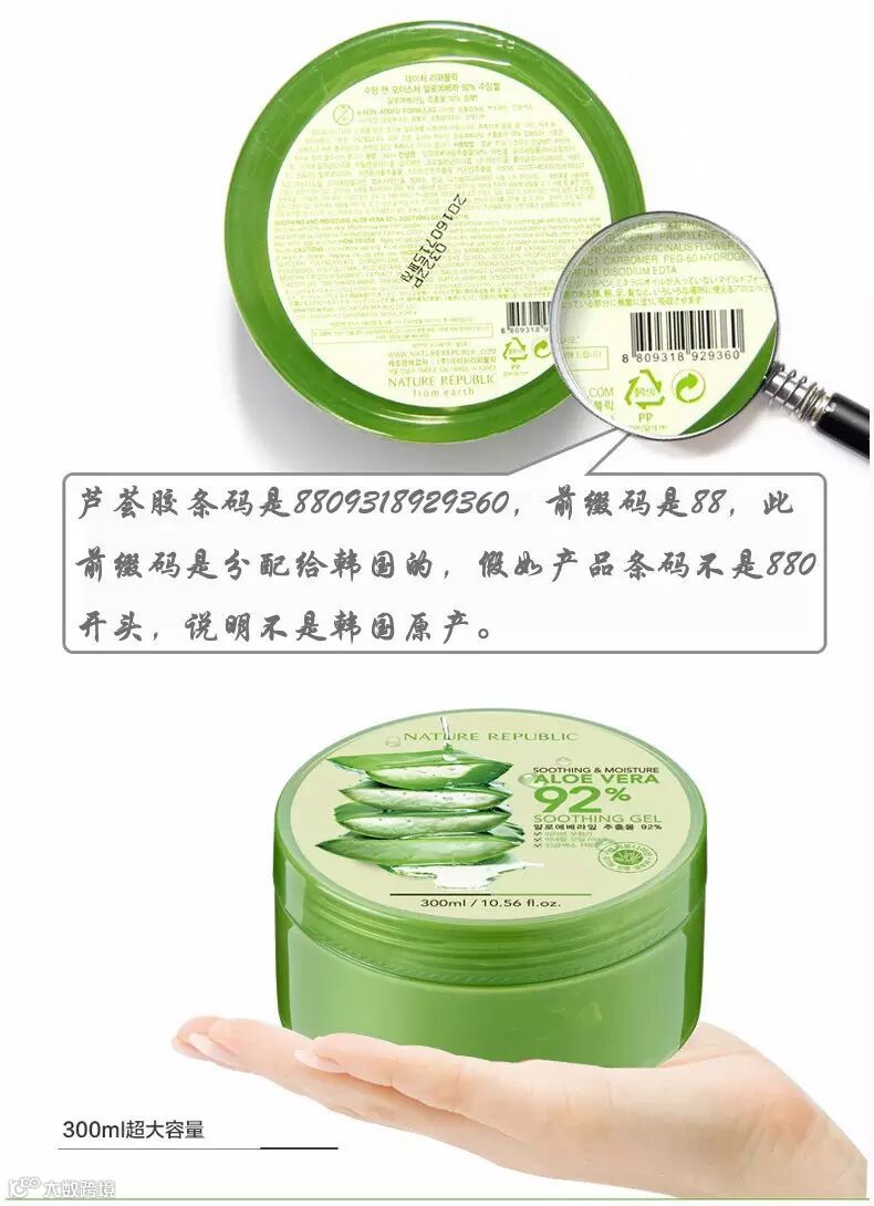 韩国 naturerepublic自然乐园芦荟胶 300ml