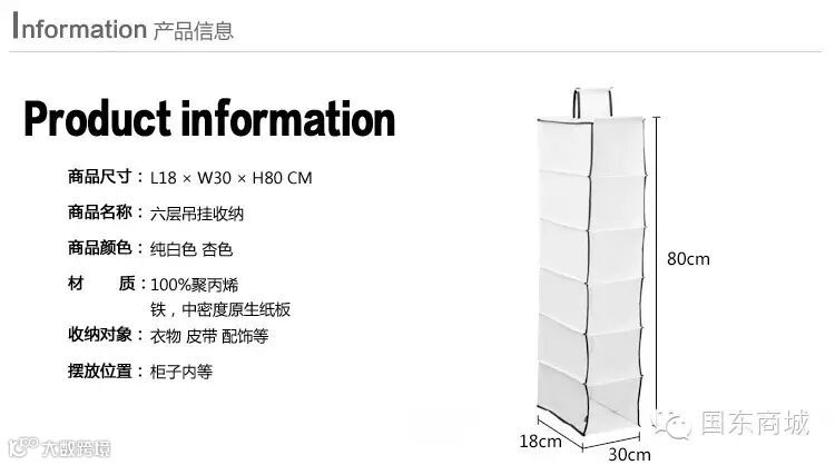 导读:六层吊挂衣物衣橱收纳袋 可挂式防霉防虫衣柜收纳挂袋国东商城GDemall.com,华南区最大的国字号跨境电商