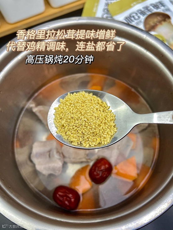 “它是自然的鲜味,配料很干净,特别适合给宝宝做菜煲汤调味,都是大自然中的天然食材!”