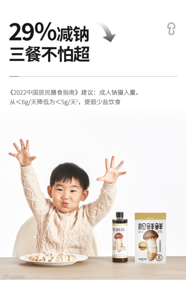 2.29%减钠,适用人群广泛,1岁+宝宝、孕妇、哺乳期宝妈、老人等特殊人群及普通人群均可食用,