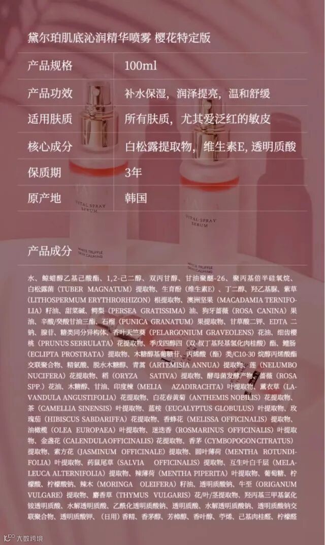 【余额提货】d'Alba/黛尔珀樱花白松露精华喷雾100ml