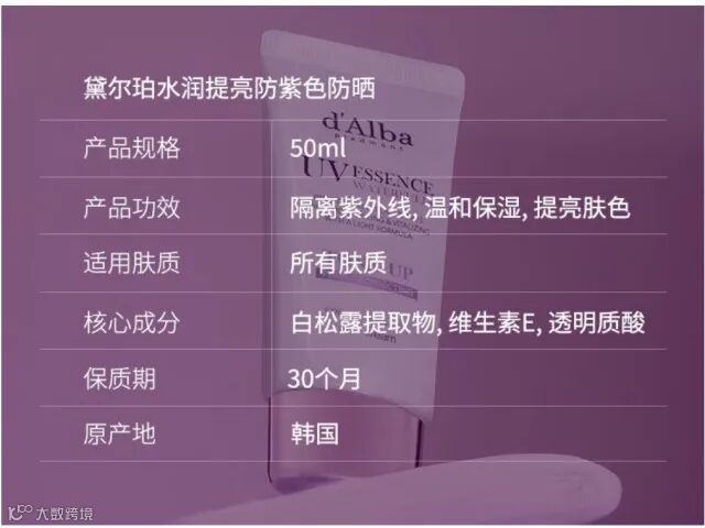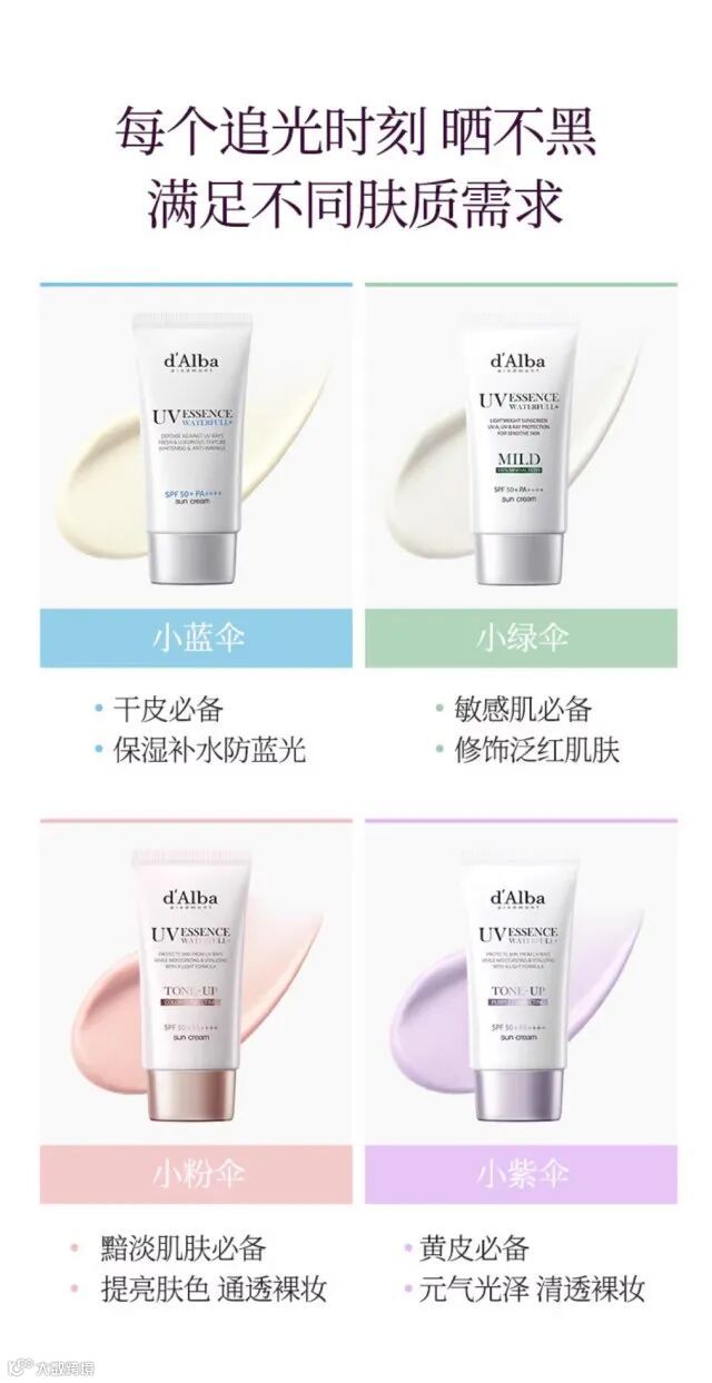 【余额提货】d'Alba/黛尔珀小紫伞水润提亮防晒隔离霜防晒霜50ml/支(4种可选)