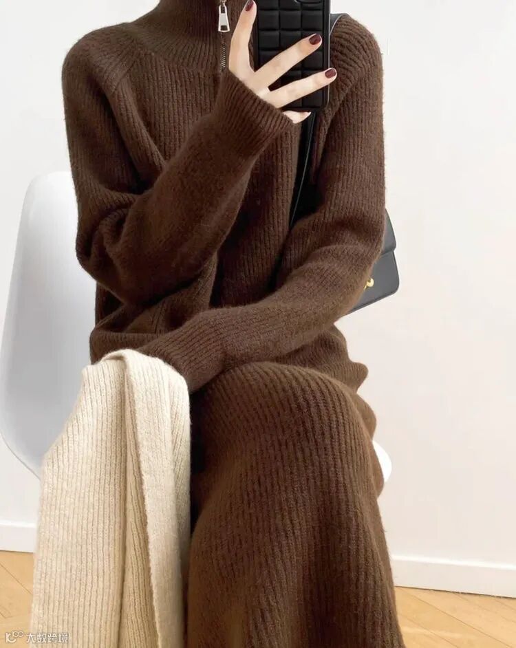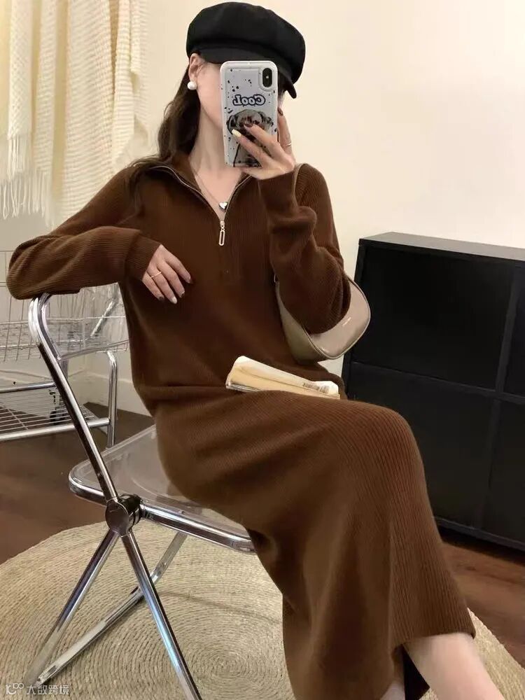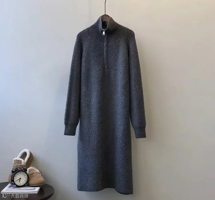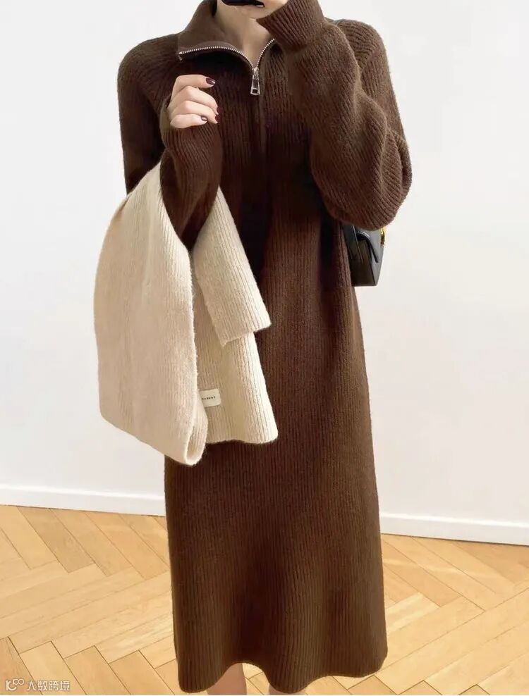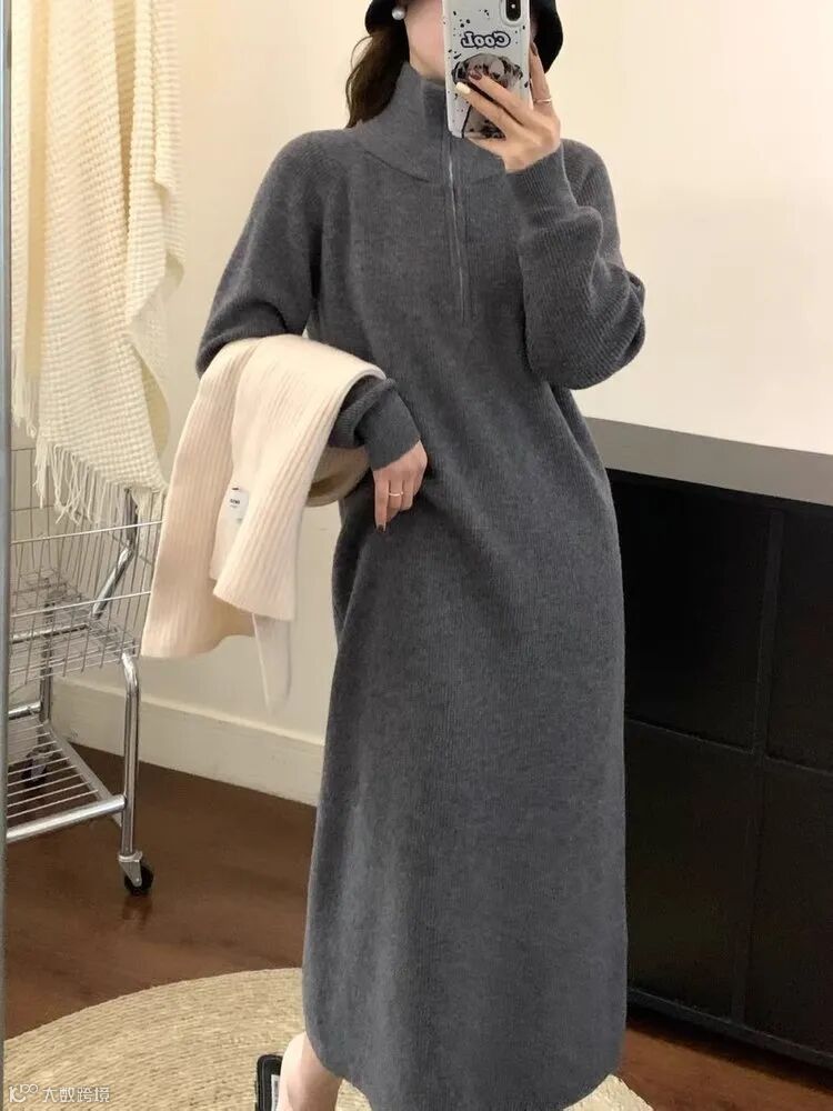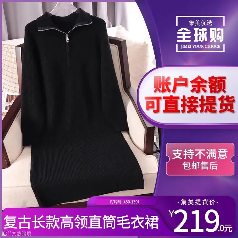 【今日上新】复古长款高领直筒毛衣裙F/均码(80-130)