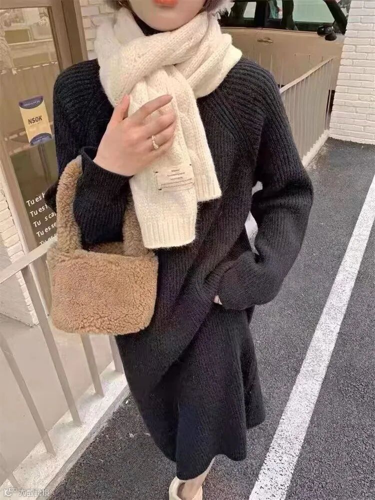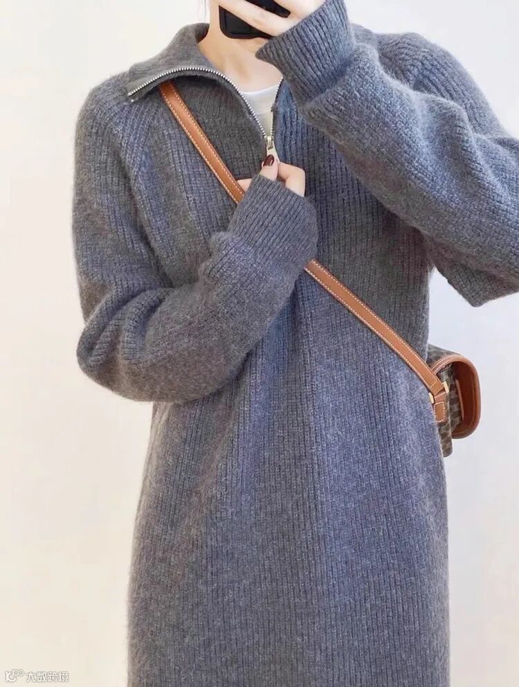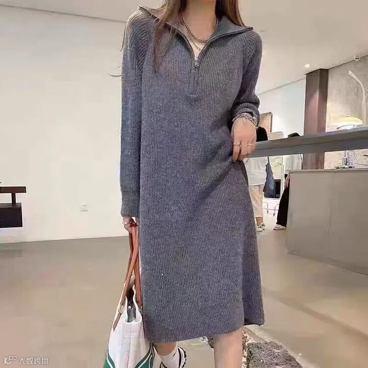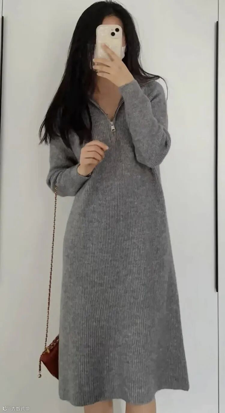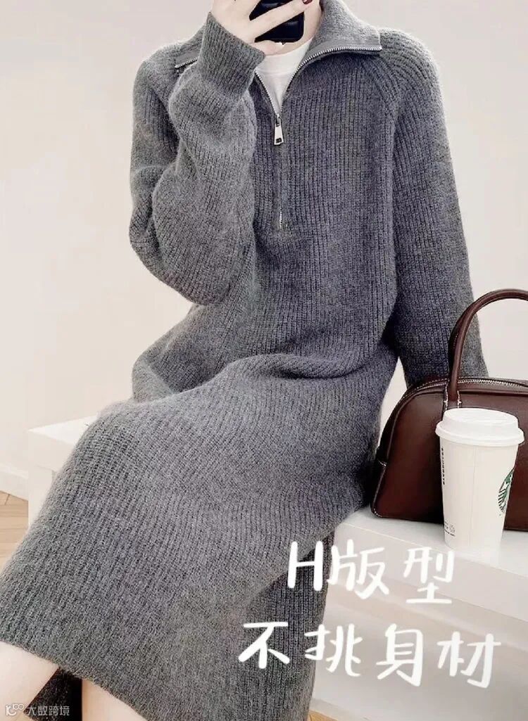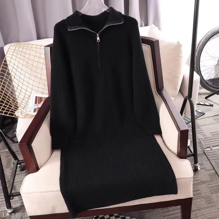 【今日上新】复古长款高领直筒毛衣裙F/均码(80-130)