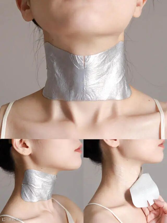 4.银绷带精心剪裁,随意运动不易脱落颈膜是3D提拉剪裁设计的银箔膜布,符合人体颈部曲线,更好的贴合颈部,零感运动,不起皱、不脱落。