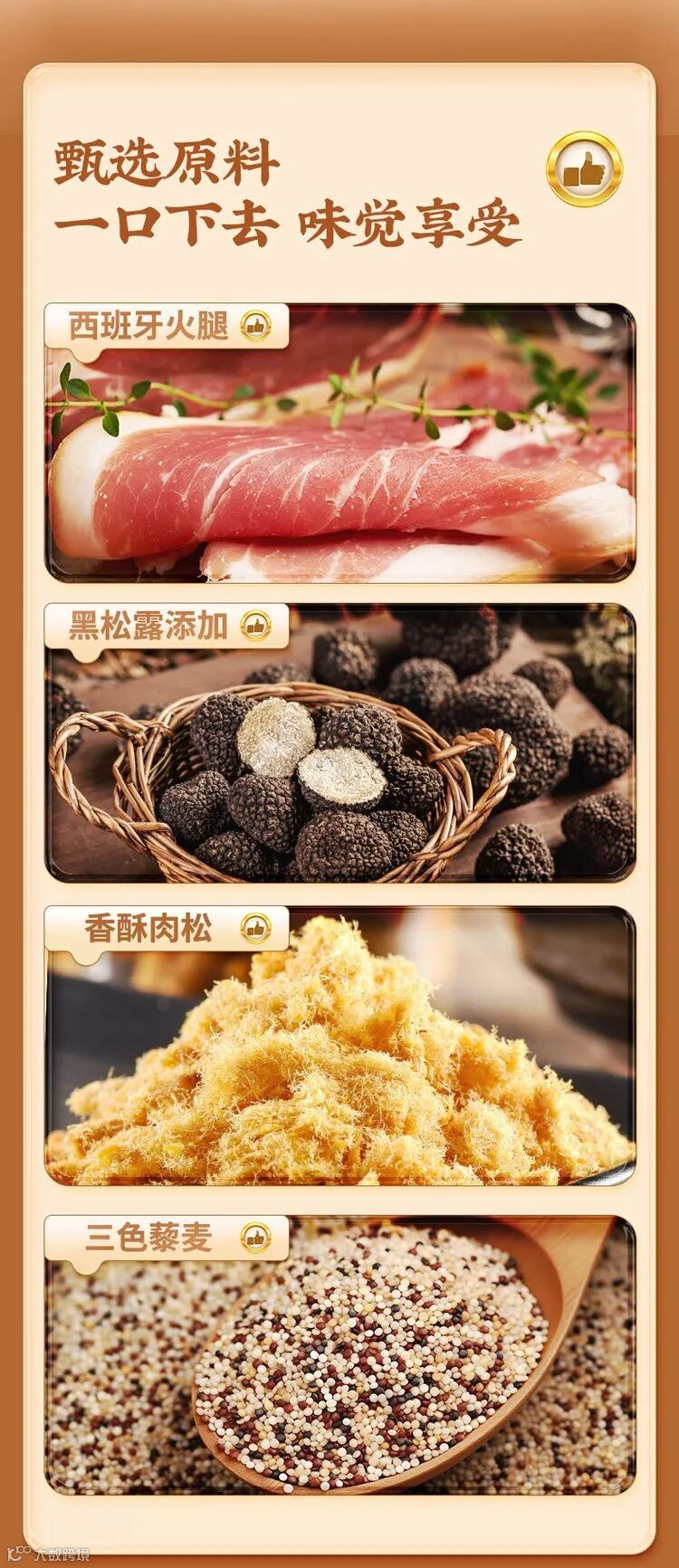 黑松露火腿苏烧饼 我们添加了三色藜麦和5%的肉松