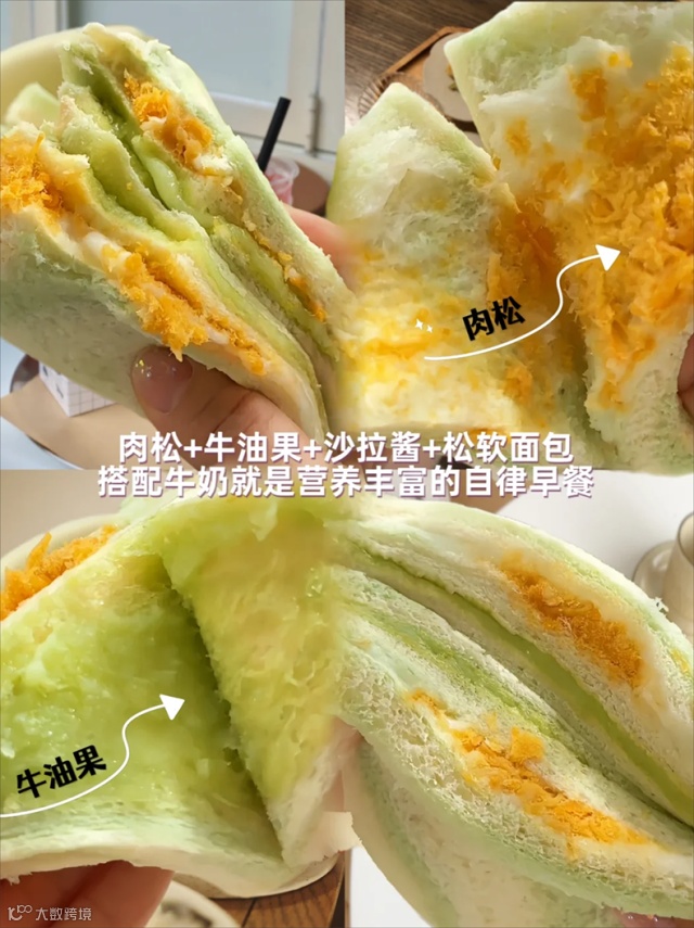【产品名称】牛油果、芋泥肉松三明治