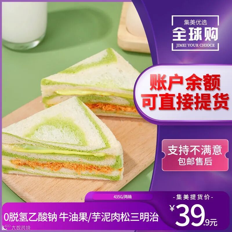 【今日上新】0脱氢乙酸钠 牛油果/芋泥肉松三明治435g/两箱