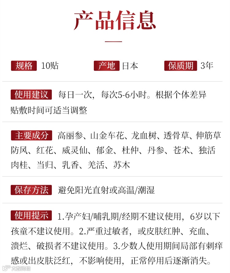 【规格】10贴/包