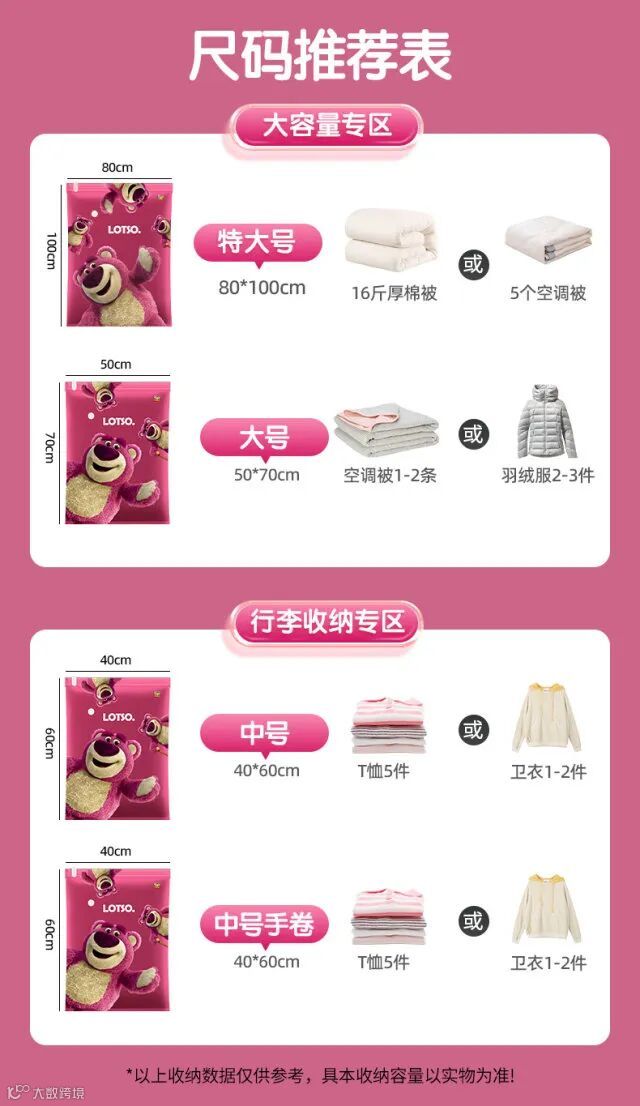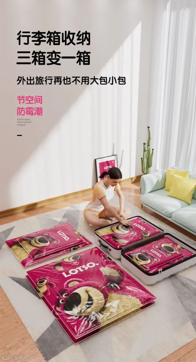 【余额提货】迪士尼草莓熊真空压缩收纳袋11件套(送电泵)