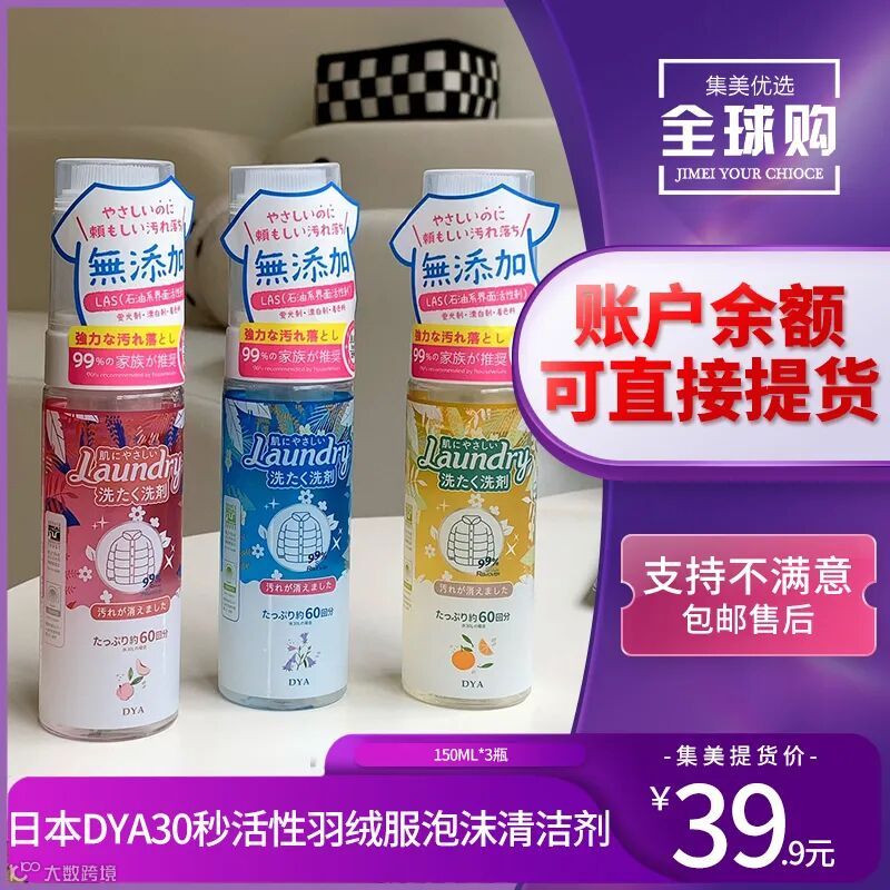 【余额提货】日本DYA30秒活性羽绒服泡沫清洁剂150ml*3瓶