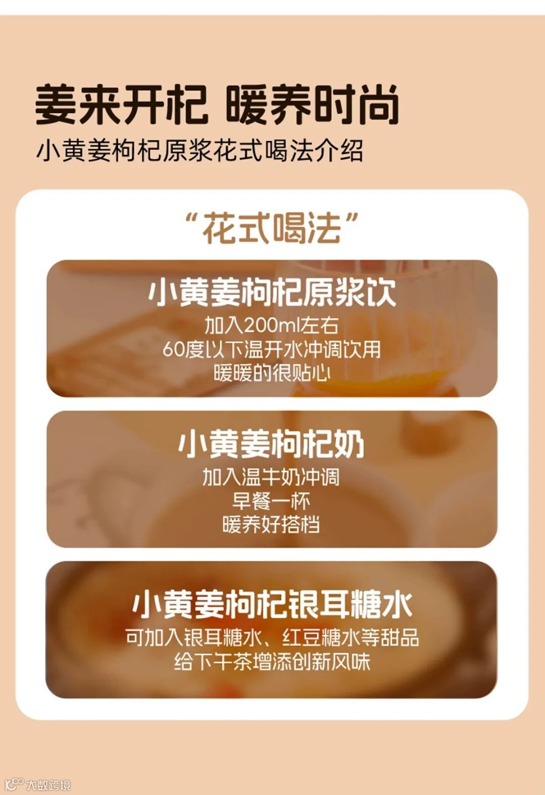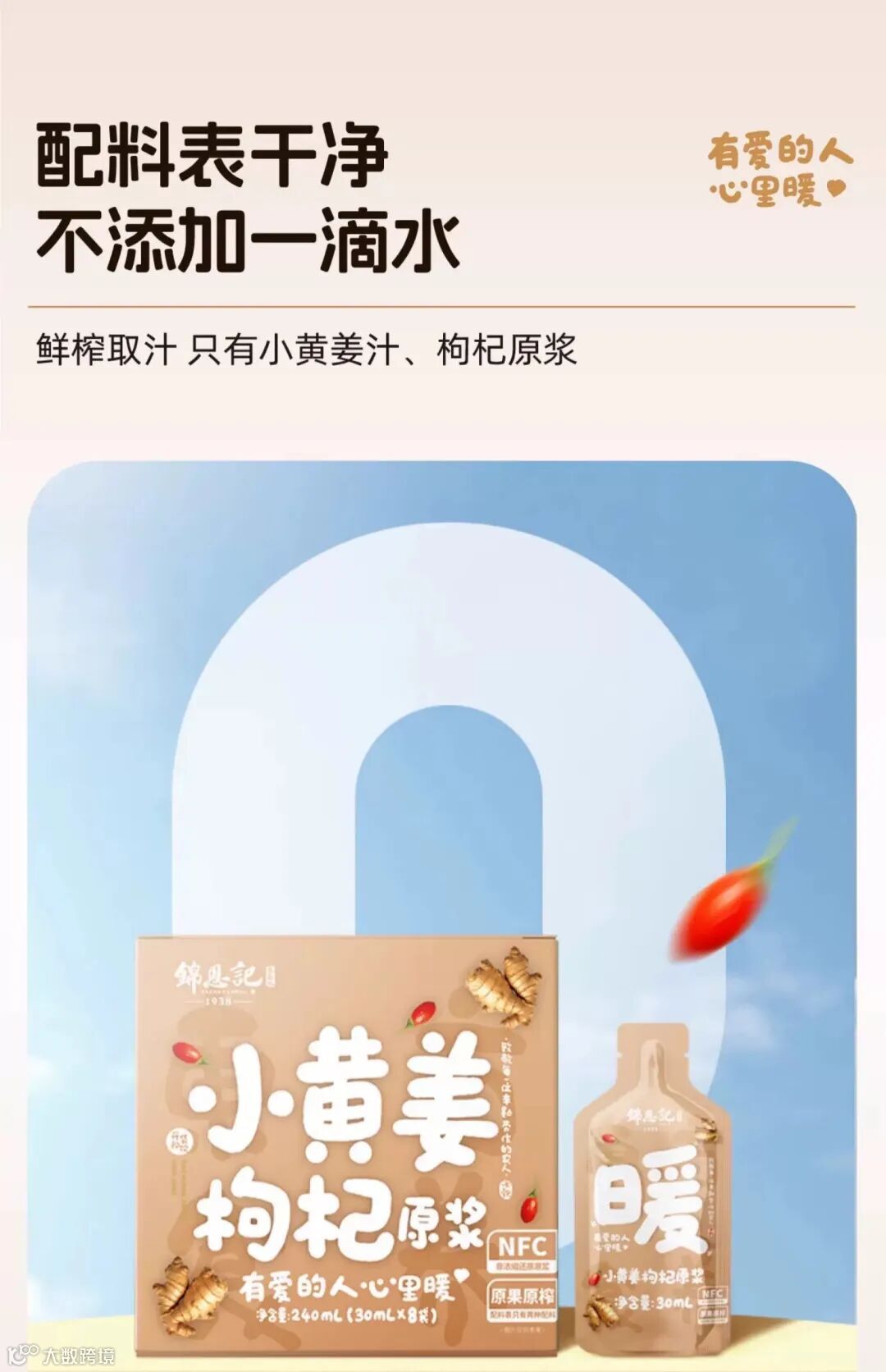 【配料】枸杞原浆、小黄姜汁