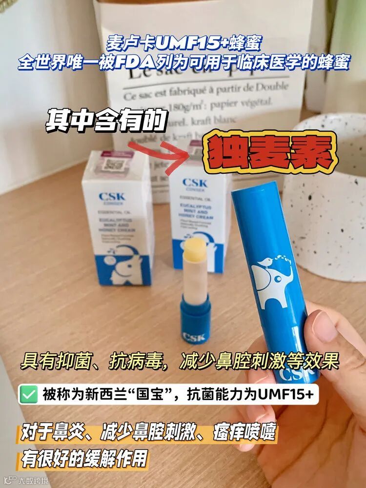 【规格】3.5g/支 【生产日期】2024年10月23日 【保质期】3年 【原产国】美国 【核心成分】薄荷油、桉叶油、麦卢卡蜂蜜、山茶籽油、迷迭香油 【注意事项】请至于干燥通风处,避免阳光直射,放在儿童接触不到的地方 【发货地】河南郑州仓 【不发货地区】:港澳台及海外