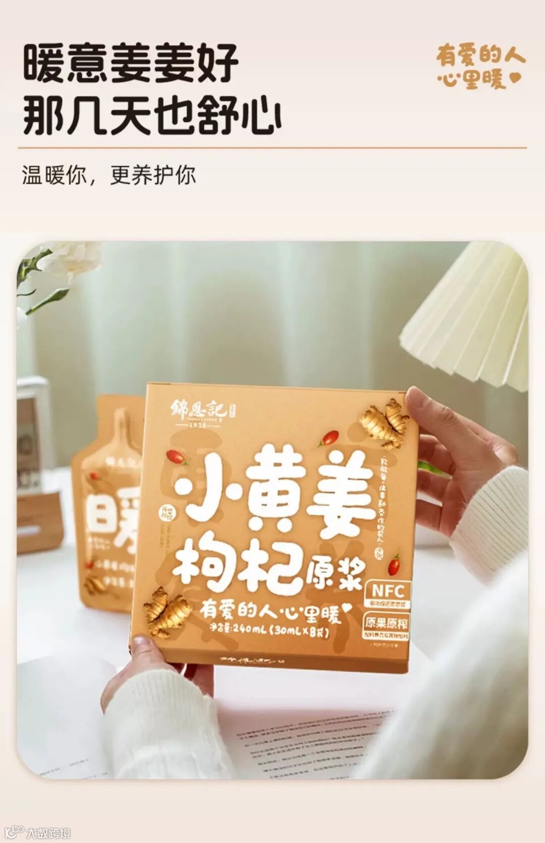 【余额提货·满3盒包邮】锦恩记NFC小黄姜枸杞原浆240ml/盒(30ml*8小袋)
