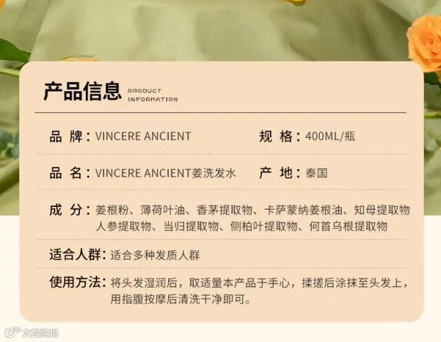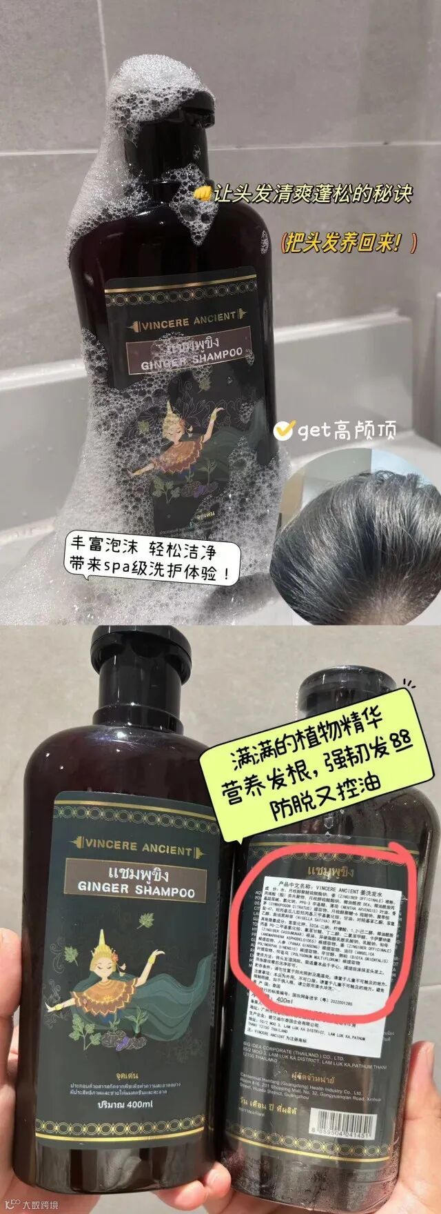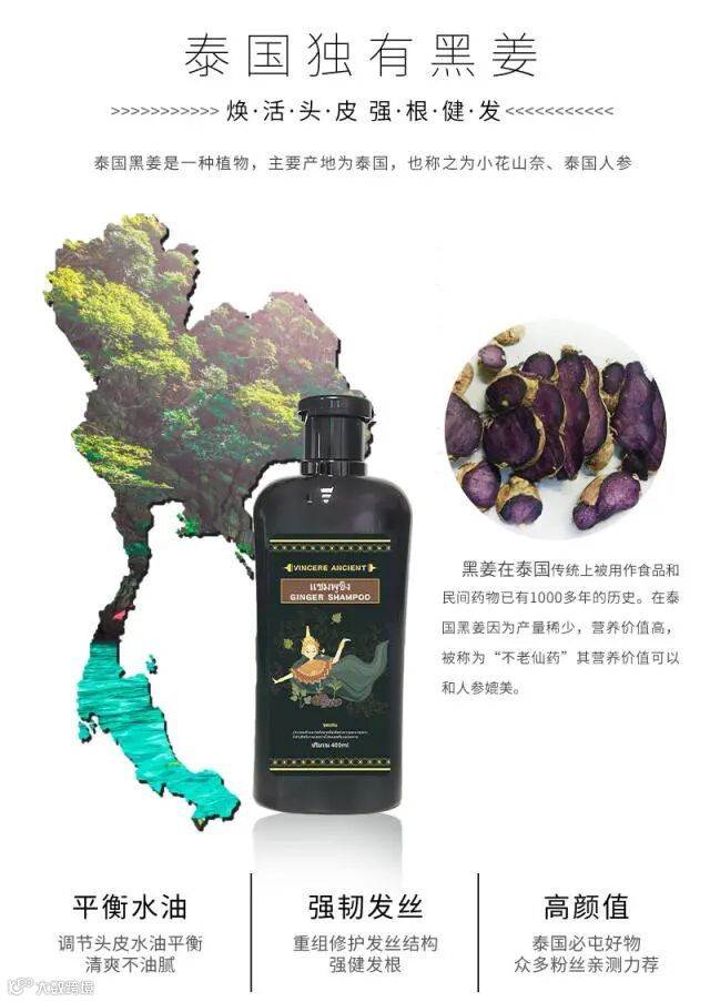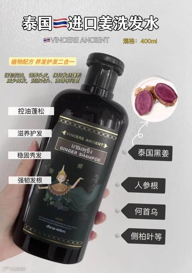 【爆款推荐】泰国VINCERE ANCIENT黑姜洗发水400ml*2瓶