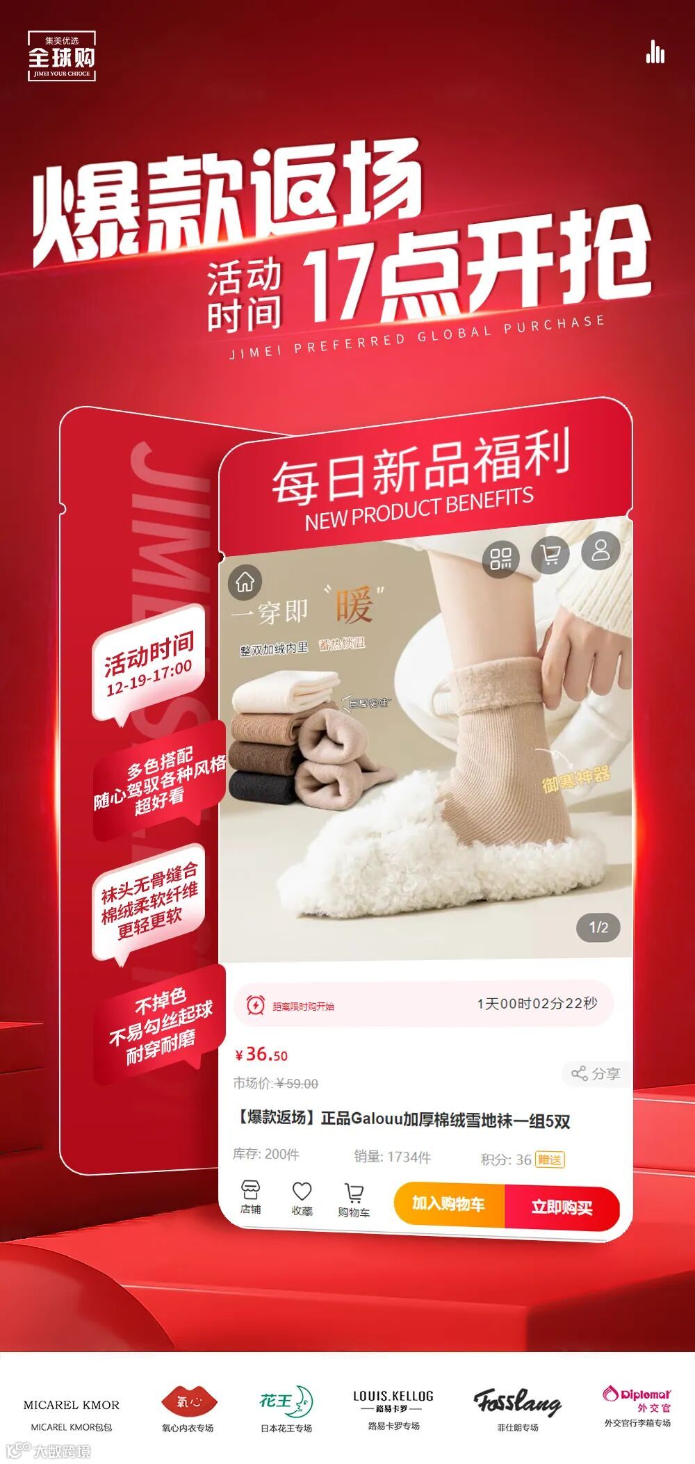 【爆款返场】正品Galouu加厚棉绒雪地袜一组5双 原价:59元 粉丝群补贴价:36.5元