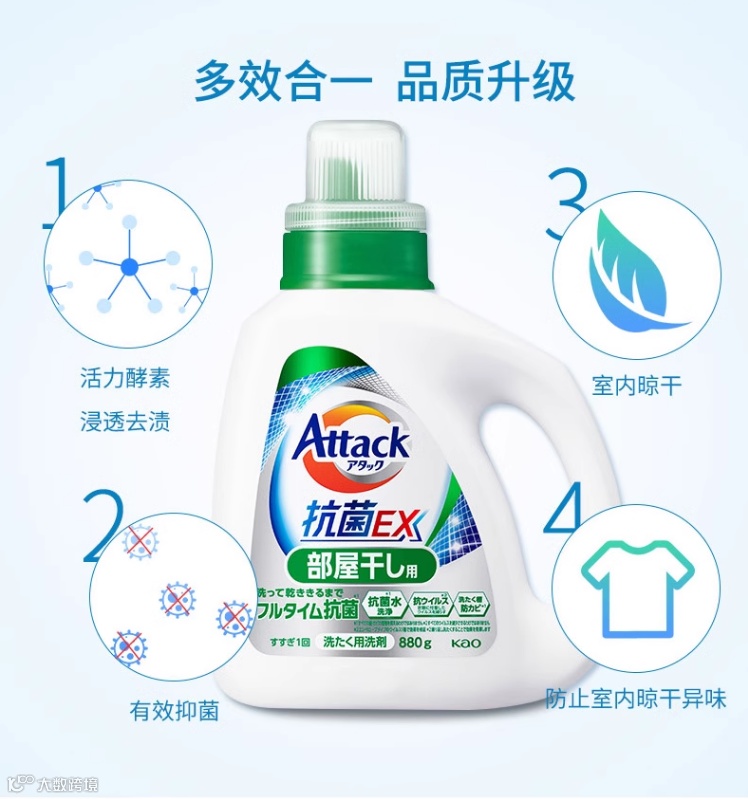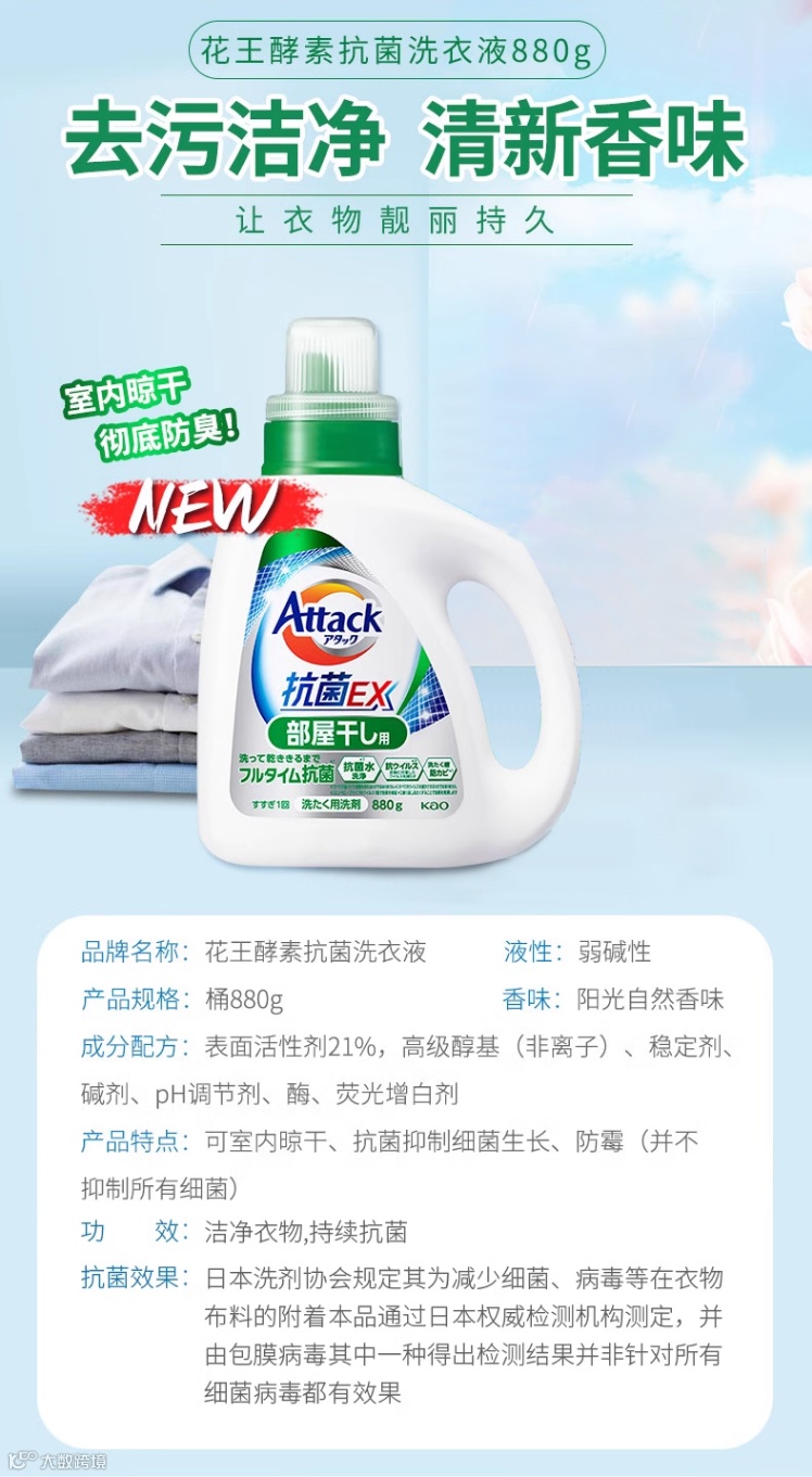 【重磅必入推荐】日本进口Kao花王酵素EX抗菌洗衣液内衣清洗液880g*2瓶 原价:89元 粉丝群补贴价:59.9元