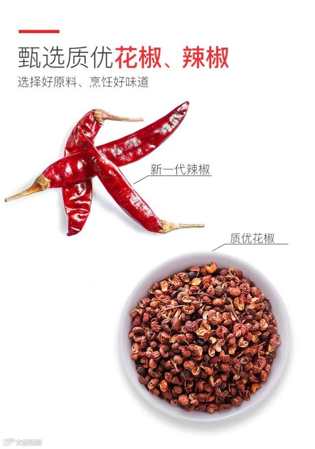 3.用精炼牛油,配合优质麻椒、上等辣椒和多种酱料慢火熬制而成!醇香十足。