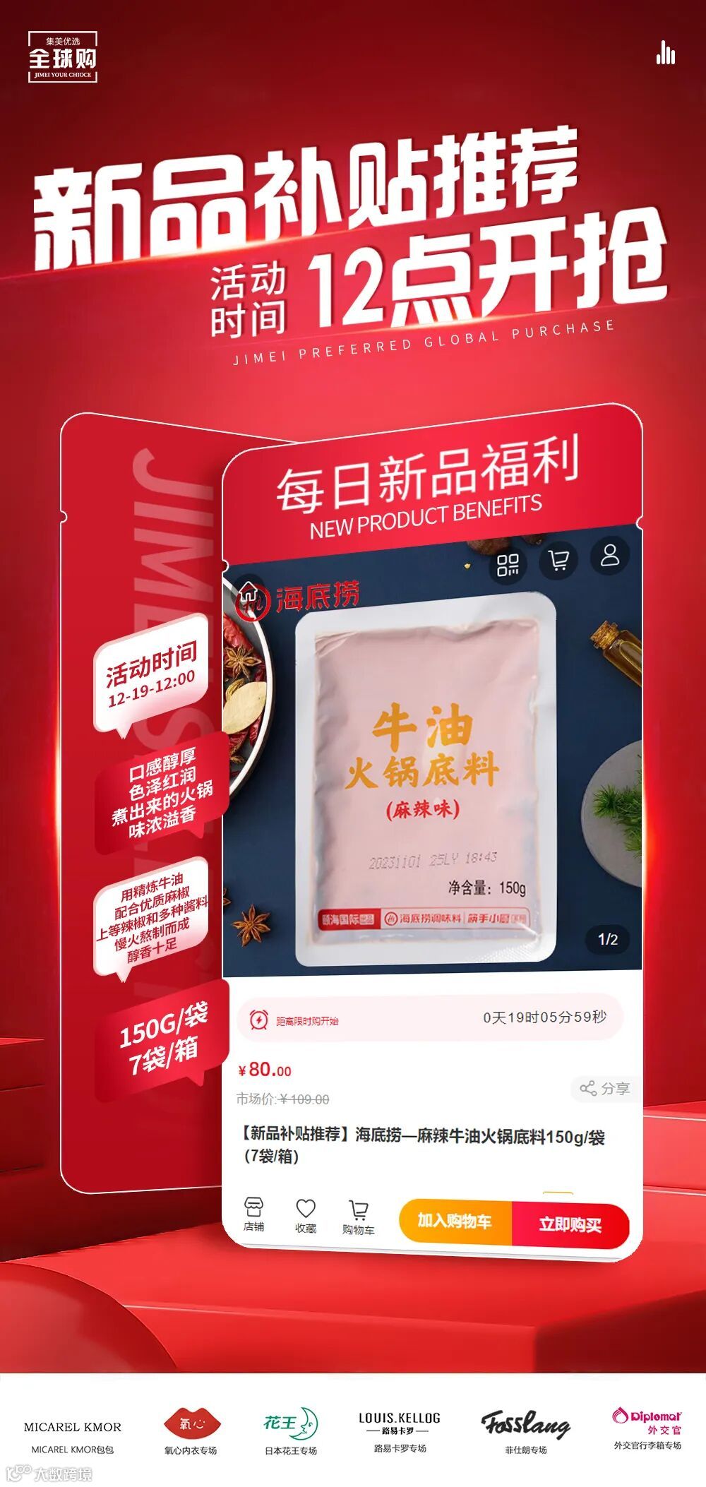 【新品补贴推荐】海底捞—麻辣牛油火锅底料150g/袋(7袋/箱) 原价:109元 粉丝群补贴价:80元
