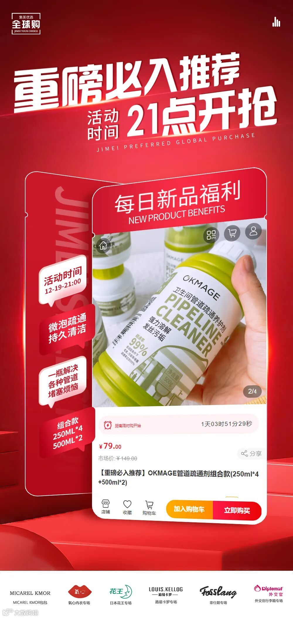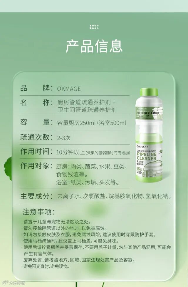【重磅必入推荐】OKMAGE管道疏通剂组合款(250ml*4+500ml*2) 原价:149元 粉丝群补贴价:79元