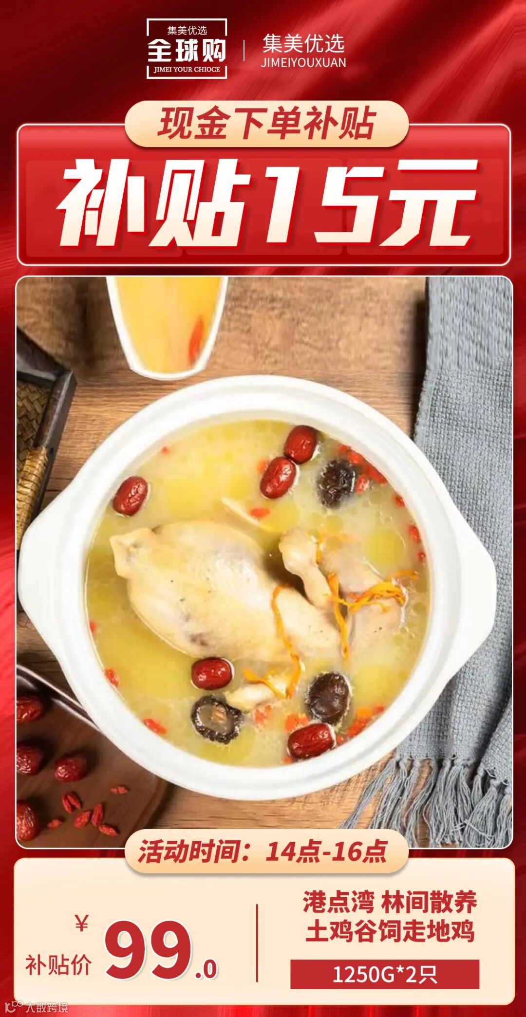 【补贴2小时】港点湾 林间散养土鸡谷饲走地鸡1250g*2只 原价:128元 粉丝群补贴价:99元