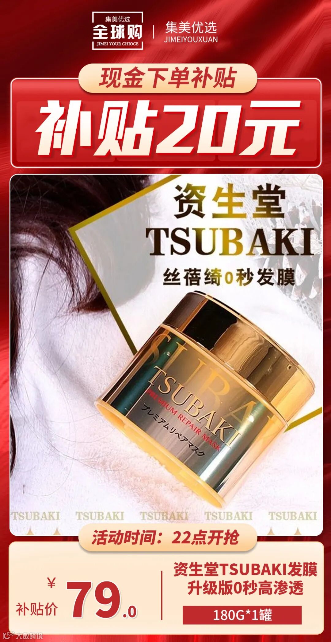 【晚睡福利】资生堂tsubaki发膜 升级版0秒高渗透180g/罐(常规/限定版随机发) 原价:129元 粉丝群补贴价:79元