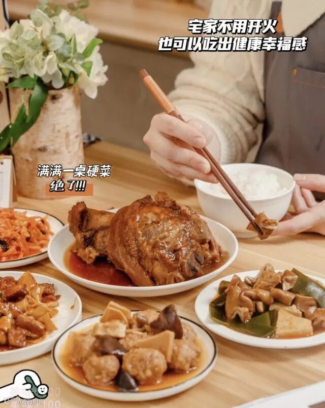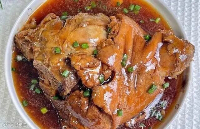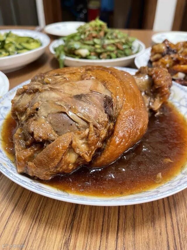 红烧大肘子是一道经典名菜,色泽红亮、形状浑圆,寓意着团圆美满、鸿运当头,看着非常喜庆,因此成为了年夜饭中的首推菜品之一