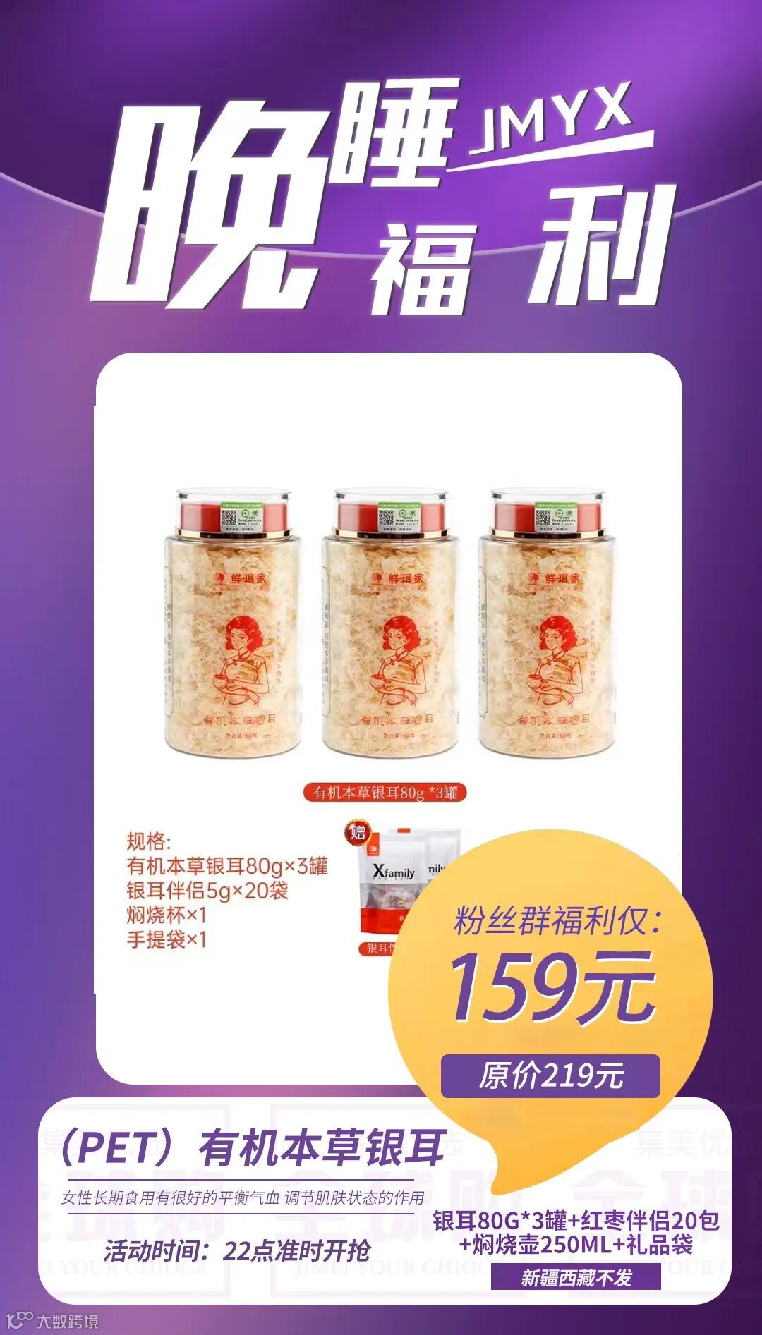 【晚睡福利】(PET)有机本草银耳80g*3罐+红枣伴侣20包+焖烧壶250ml+礼品袋 原价:219元 粉丝群补贴价:159元