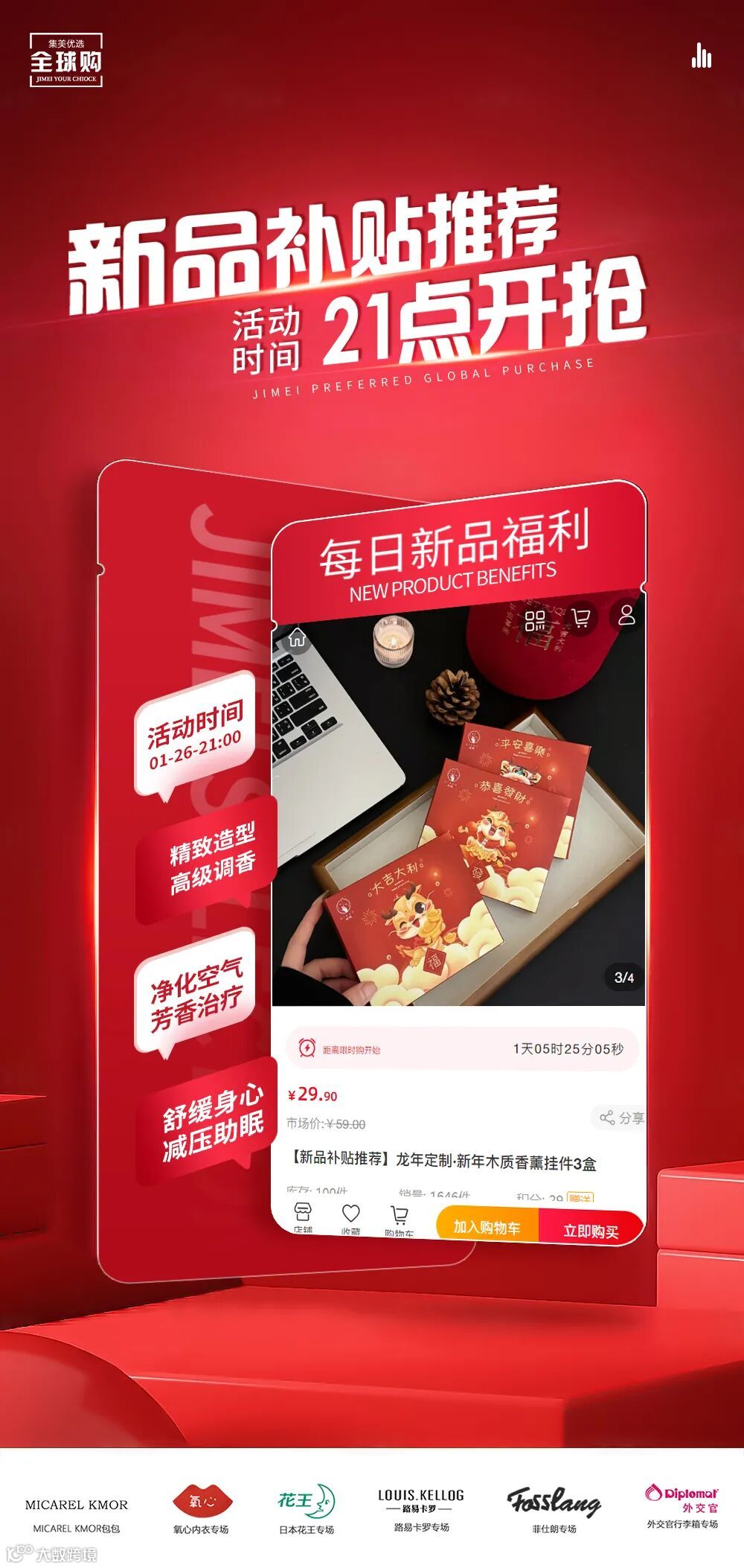 【新品补贴推荐】龙年定制·新年木质香薰挂件3盒 原价:59元 粉丝群补贴价:29.9元