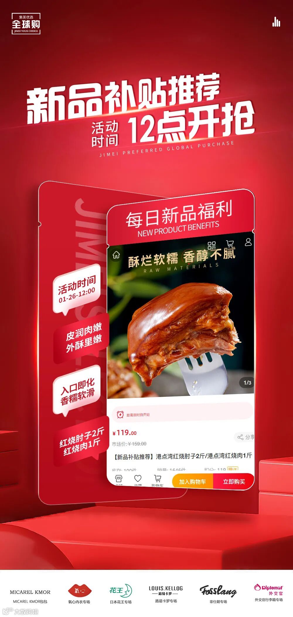【新品补贴推荐】港点湾红烧肘子2斤/港点湾红烧肉1斤 原价:159元 粉丝群补贴价:119元
