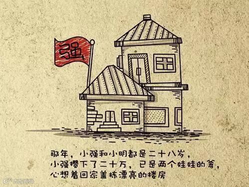 那年,小强和小明都是二十八岁。小强攒下了二十万,已是两个娃娃的爹,心想着回家盖栋漂亮的楼房。