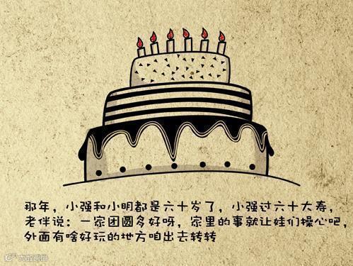 那年,小强和小明都是六十岁了。小强过六十大寿,老伴说:一家团圆多好呀,家里的事就让娃们打理吧,外面有啥好玩的地方,咱出去转转。