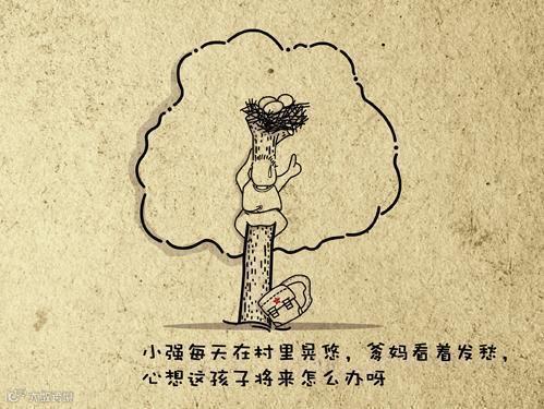 小强每天在村里晃悠,爹妈看着发愁,心想这孩子将来怎么办呀。