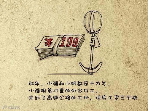 小强跟着村里人外出打工,来到了高速公路的工地,保底工资三千块。