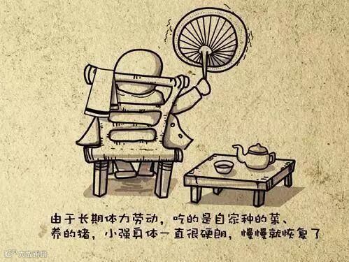 由于长期的体力劳动,吃的是自家种的菜、养的猪,小强的身体一直都很硬朗,慢慢的就恢复了。