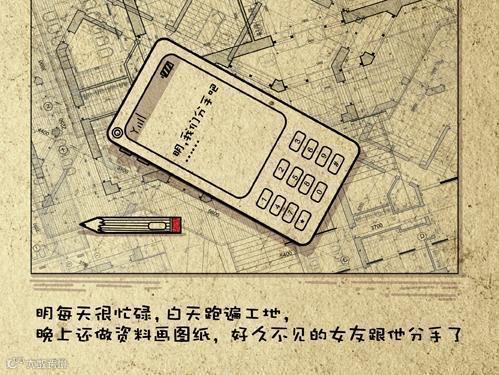 小明每天很忙碌,白天跑遍工地,晚上还做资料画图纸,好久不见的女友跟他分手了。