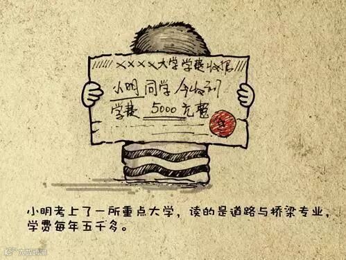 小明考上了一所重点大学,读的是道路与桥梁专业,学费每年五千多。