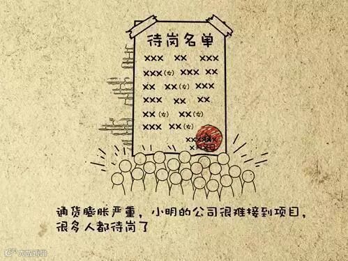 通货膨胀严重,小明的公司很难接到项目,很多人都待岗了。