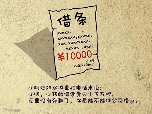 小明媳妇从城里打电话来说:小明,小孩的借读费要十五万呢,家里没有存款了,你看能不能找公司借点。