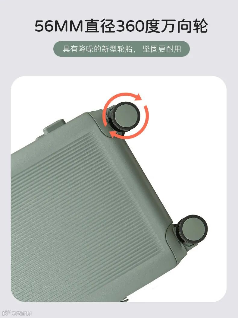 56MM直径静音设计360°万向轮,经过严格测试,推拉顺滑省力,即使在崎岖路面也能平稳跟随,真正做到“步履轻盈”。
