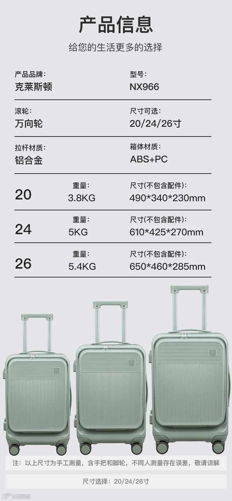 六、有20寸/24寸/26寸多种尺寸可选,可满足您多种出行需求。